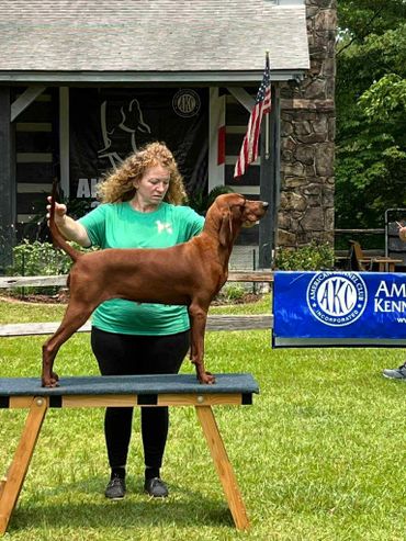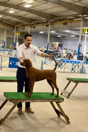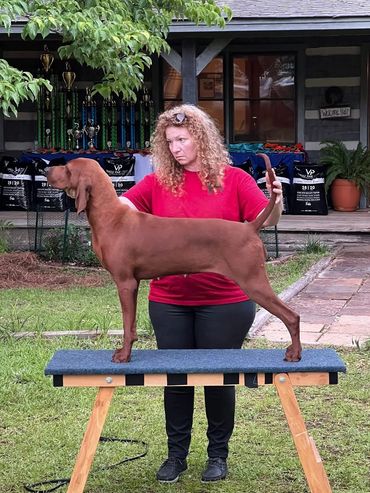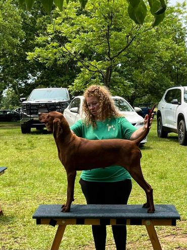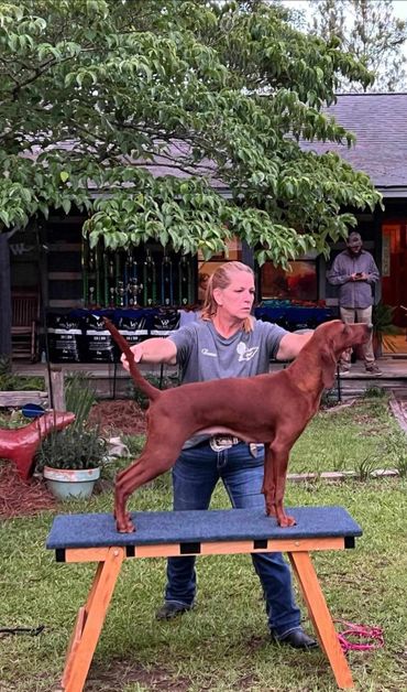 Our Dogs bench show throughout their entire lives. We start them as tiny babies at 5 weeks of age and bench them weekly to continually evaluate conformation and structure to help us choose which pups we will keep for our breeding programs. Any Stable Solid Surface Can Be Used as a bench!
